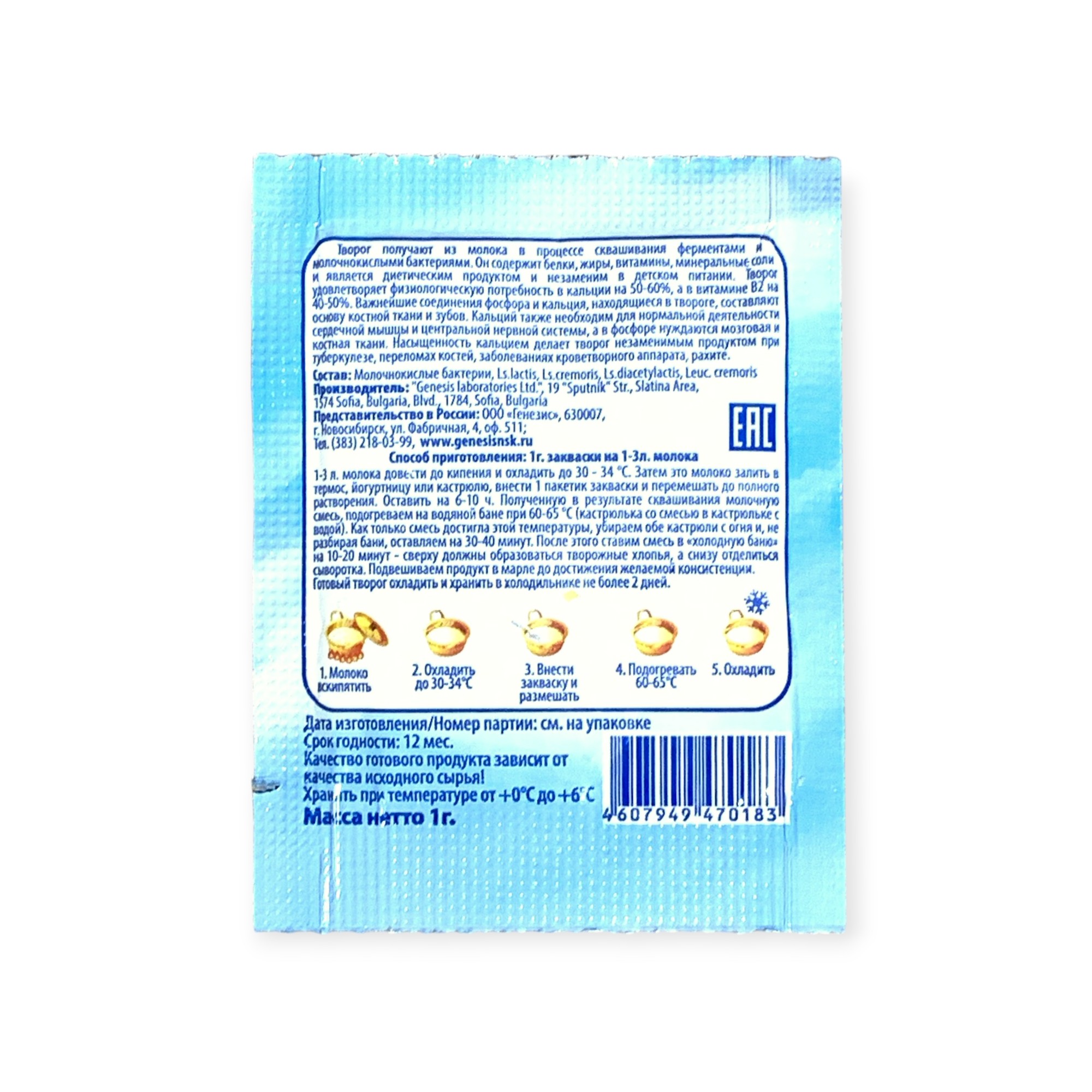 Закваска Творожок Genesis, 1 пакет от 100 руб. с доставкой. Пункт выдачи в Купино. Интернет магазин по сыроделию. Всё всегда в наличии.